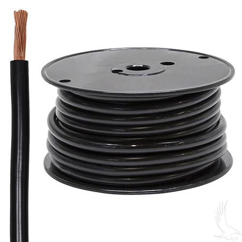 6 Gauge black cable, 50 ft. long.| For efficient delivery of power to standard motors.| High strand count for more flexibility and conductivity and less resistance and heat.